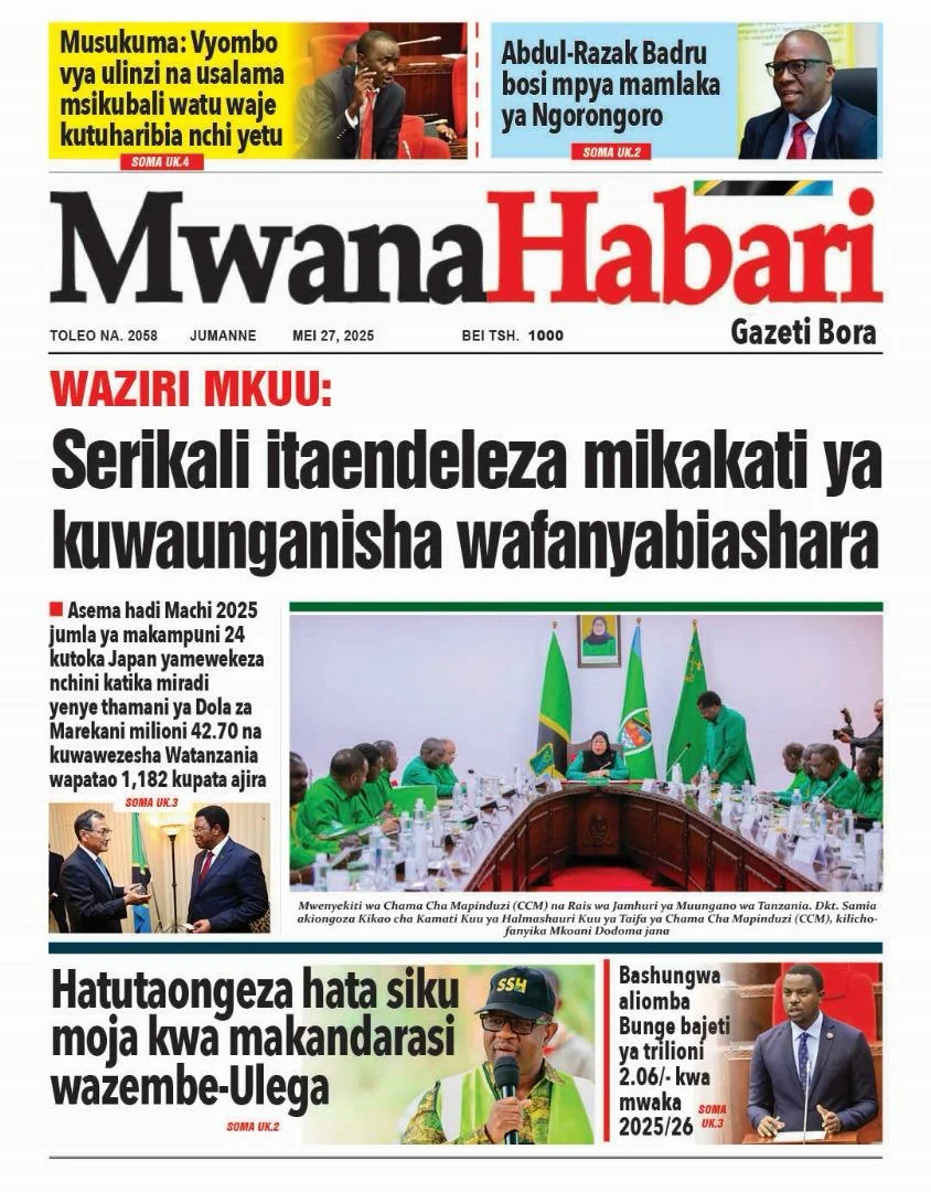 MAGAZETI YA LEO JUMANNE MEI 27,2025 ,WANAHARAKATI WAWAVURUGA WABUNGE TANZANIA,RAIS SAMIA ATEUWA NA KUTUMBUA VIONGOZI MBALIMBALI.